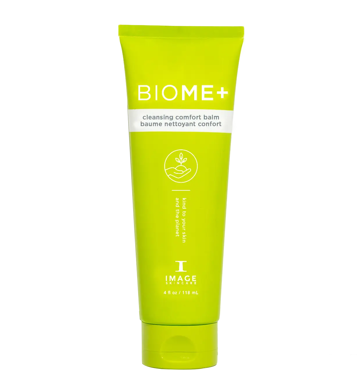 BIOME+ Cleansing Comfort Balm is a skin-nourishing cleansing balm that melts away: